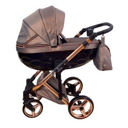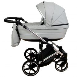 Rimini Toral fue creado para usuarios móviles que aprecian caminar en espacios urbanos y en el campo. El armazón de la carriola ligero y duradero es fácil deplegar y ocupa poco espacio en el maletero. Las ruedas libres de mantenimiento con un neumático de poliuretano duradero, las ruedas delanteras giratorias y el doblea colchado del marco brindan una comodidad de conducción incomparable. El capazo tiene una ventana de ventilación cerrada en la capota y una abertura de ventilaciónajustable en la parte inferior. El dosel de la góndola y el asiento deportivo están equipados con una visera solar. Después de desabrochar la cremallera, la capota del asiento deportivo se agranda en un segmento adicional. La bolsa incluida contiene una funda para la lluvia, una mosquitera y un portavasos. El asiento deportivo es totalmente ajustable, al igual que el reposacabezas del capazo y el asa del armazón.