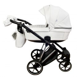 Belissa es el modelo más nuevo de cochecito de bebé multifuncional de TORAL. El capazo Belissa tiene una ventana de ventilación cerrada con un imán escondido en la tapicería. La funda para los pies tiene cremallera, lo que permite un acceso rápido al niño sin quitar toda la funda. El protector contra el viento de la funda se puede desplegar o desmontar por completo si no es necesario. Mantener el contacto visual con el niño es posible gracias a la ventana transparente. El capazo tiene una ventana de ventilación adicional con cremallera y una sombrilla retráctil. El asiento deportivo de Belissa es totalmente ajustable, tiene un reposapiés extendido, una cómoda funda para los pies y cinturones de seguridad de cinco puntos. El parachoques forrado de cuero es extraíble e inclinable. La capota se puede agrandar y tiene una ventana de ventilación cerrada con una solapa. El marco del cochecito se puede plegar junto con el asiento deportivo, lo que facilita el transporte. El marco Belissa es ligero y compacto cuando está plegado. Tiene un sistema de plegado fácil, amortiguadores blandos, una cómoda cesta de la compra, ruedas tubeless sin mantenimiento, freno integrado y portabotellas. Belissa está equipada con un elegante bolso con un elegante pompón de piel y un cinturón de hombro. Otros accesorios incluidos en el set son: manto de lluvia, mosquitera, guantes y cambiador.