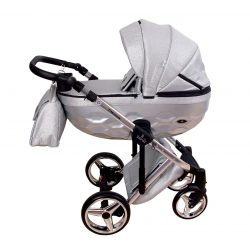 NATALY es nuestro modelo de cochecito de bebé de múltiples funciones con un sistema innovador de amortiguadores dobles que garantizan una conducción confortable y segura. El chasis está construido en aluminio ligero y está muy bien equilibrado por lo que es fácil maniobrar.