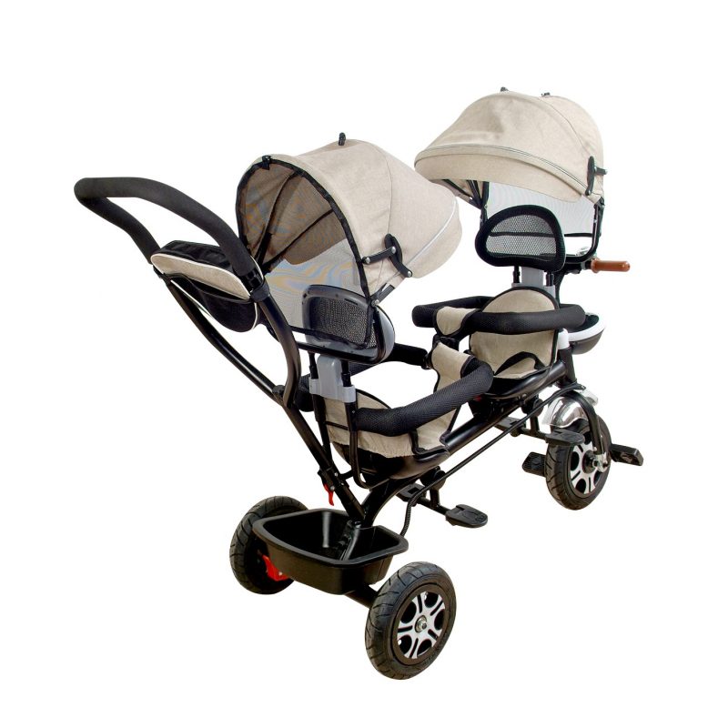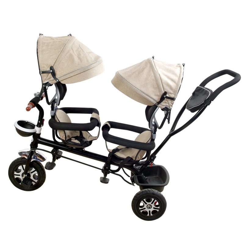 manija de empuje de altura ajustable para dirigir el triciclo manteniendo al bebé seguro. El dosel con raya reflectante alrededor