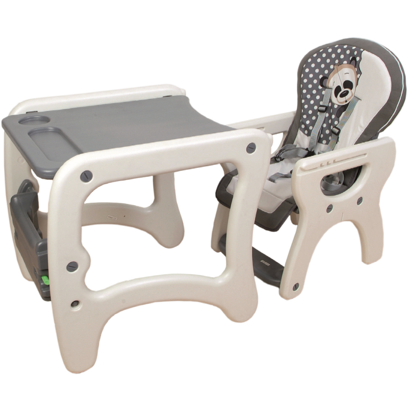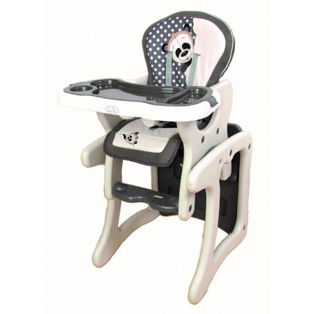 Trona convertible en mesa y silla, multiusos, desmontable, práctica y cómoda para comer y con un pupitre para que tus hijos puedan pintar, leer y desarrollar más actividades. Diseño moderno y divertido, diseño osito panda Mundi Bebé. Se puede empezar a usar desde los 6 meses hasta los 3 años. Posibilidad de quitar la bandeja para poder acercar la trona a la mesa. Se convierte en mesa/silla pupitre, para que el niño pueda jugar y desarrollar sus sentidos. Bandeja doble extraible para facilitar la limpieza. Fácil de limpiar. Colchoneta desenfundable y lavable. Material del asiento en algodón lavable y transpirable. Tres posiciones de bandeja. Bandeja extraible y sobre-bandeja. Reclinado 3 posiciones. Arnés de 5 puntos.